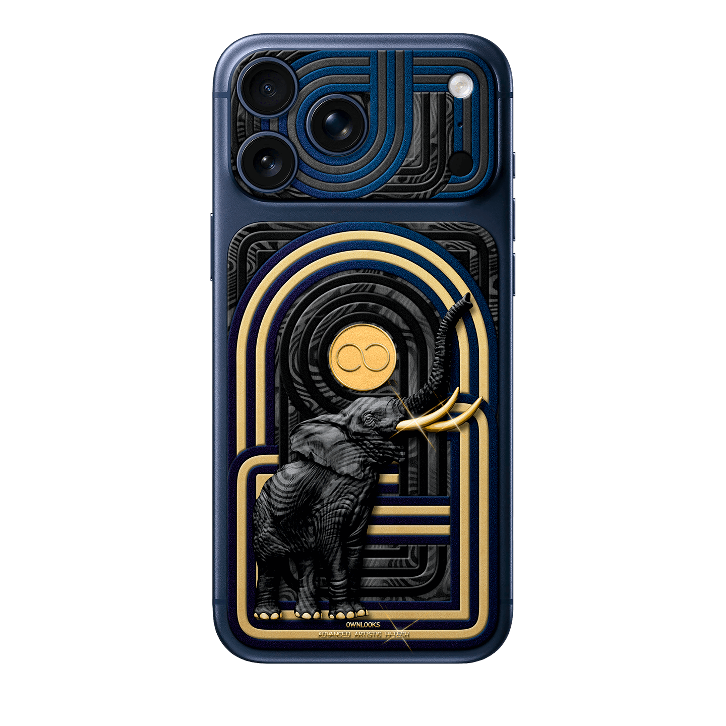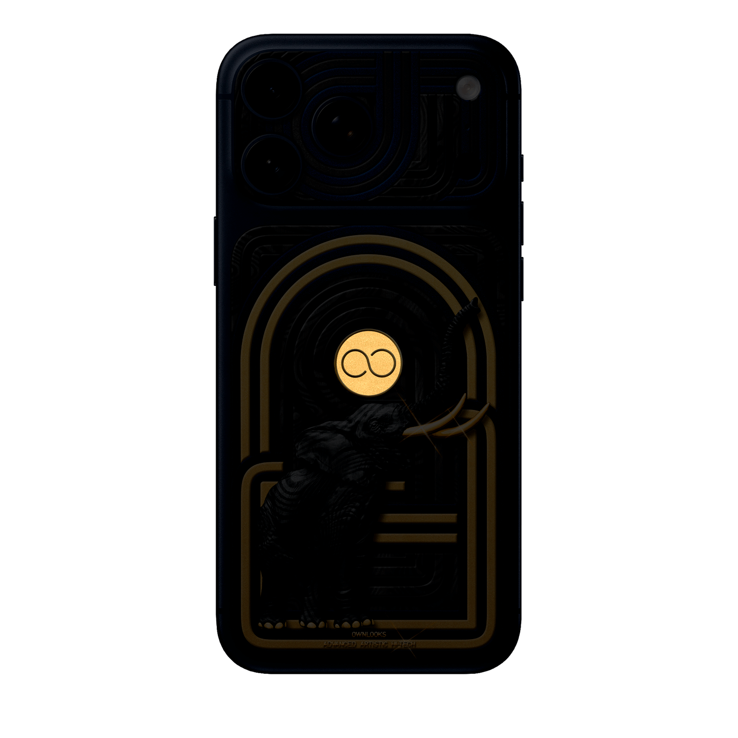 Airavata Gold is inspired by the Hindu and Buddhist sacred white elephant, the mount of Indra, king of gods. Though not white and with only one head, our elephant is carved from Damascus carbon with tusks in solid gold, with Asterion Duochrome ornament featuring added golden lines. Our proprietary backlight under the sapphire crystal logo turns on in parallel with the screen.