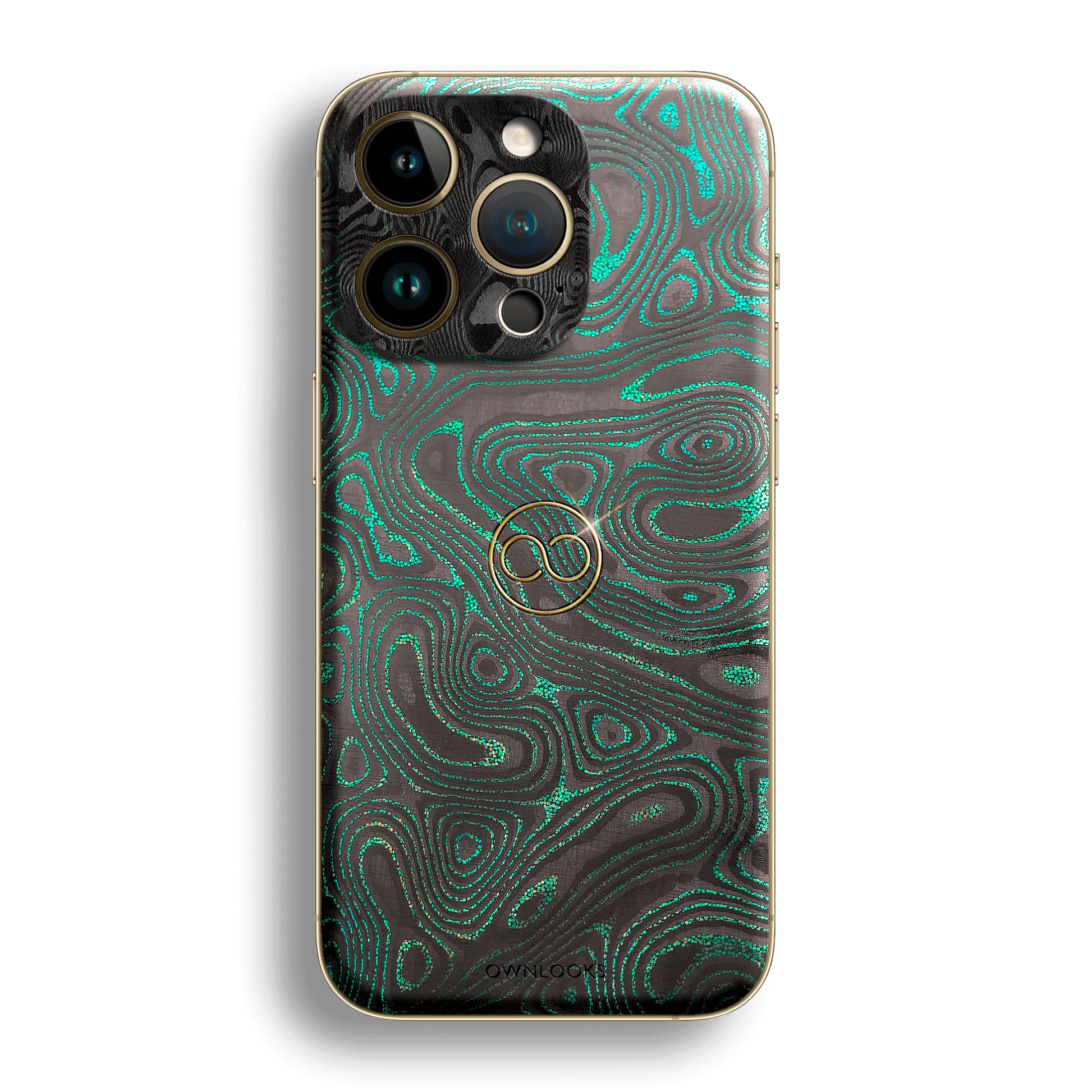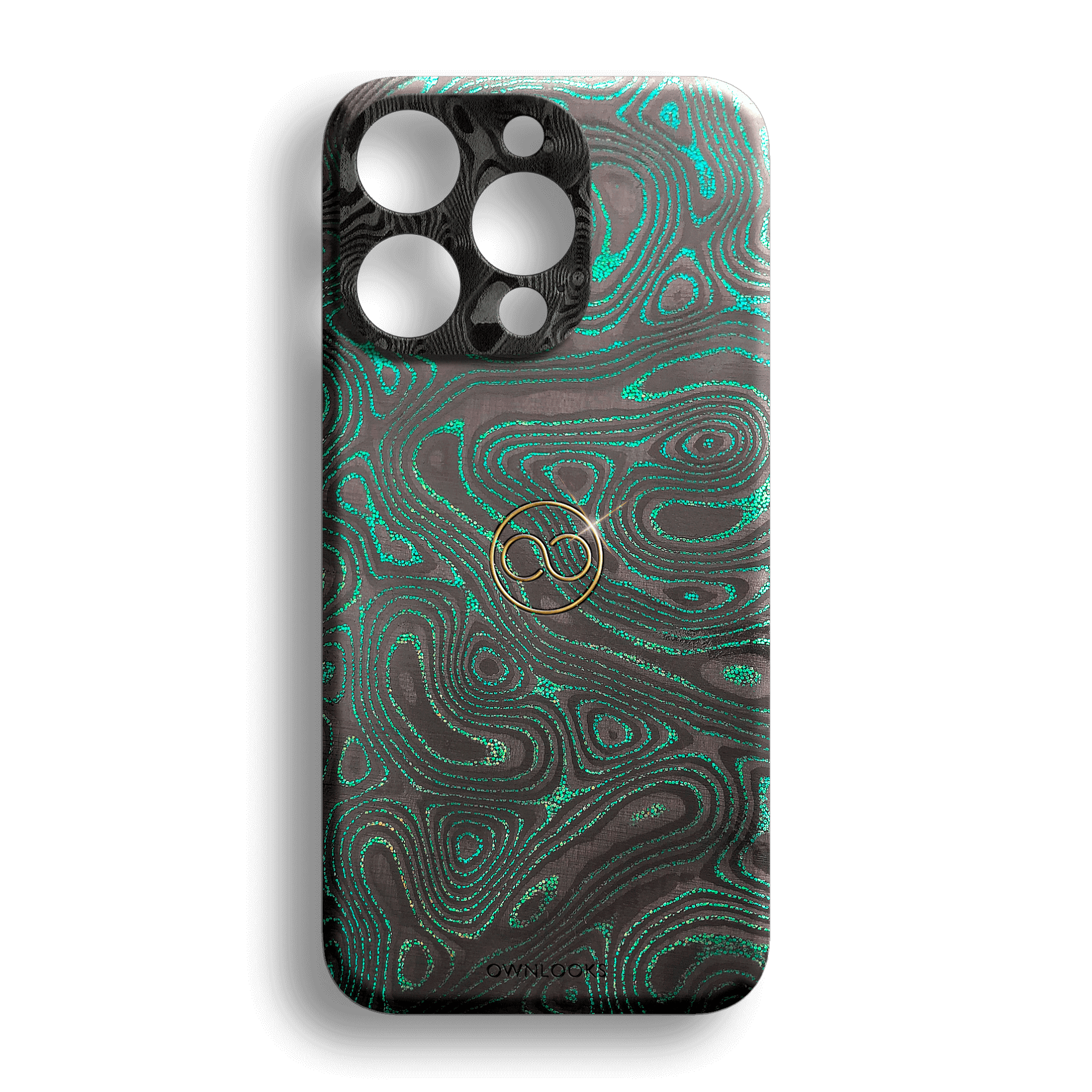 Discover the finesse of the MagSafe Armor Emerald Glow. Its gaze-catching Emerald Glow Damascus Carbon contrasts beautifully with the matte Black Damascus camera protection area and gold-plated logo, providing a sophisticated and exclusive look. This premium product is specifically designed to support MagSafe accessories for a seamless experience.