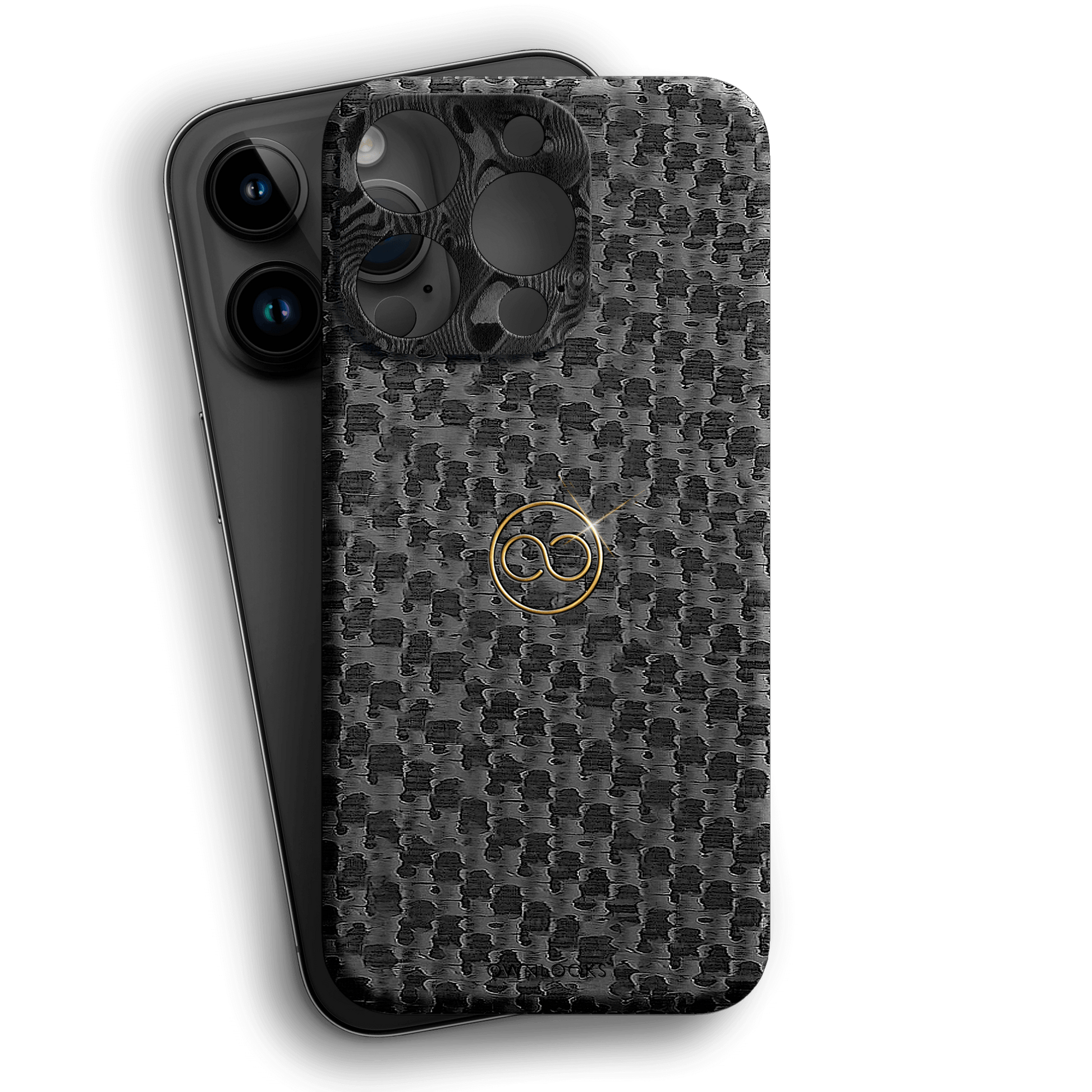 This sleek MagSafe Armor is crafted from understated Black Twill Carbon, and features a shiny gold-plated logo and a matte Black Damascus camera protection area. It is fully compatible with all MagSafe accessories. Enjoy a smart and stylish way to decorate and protect your device.